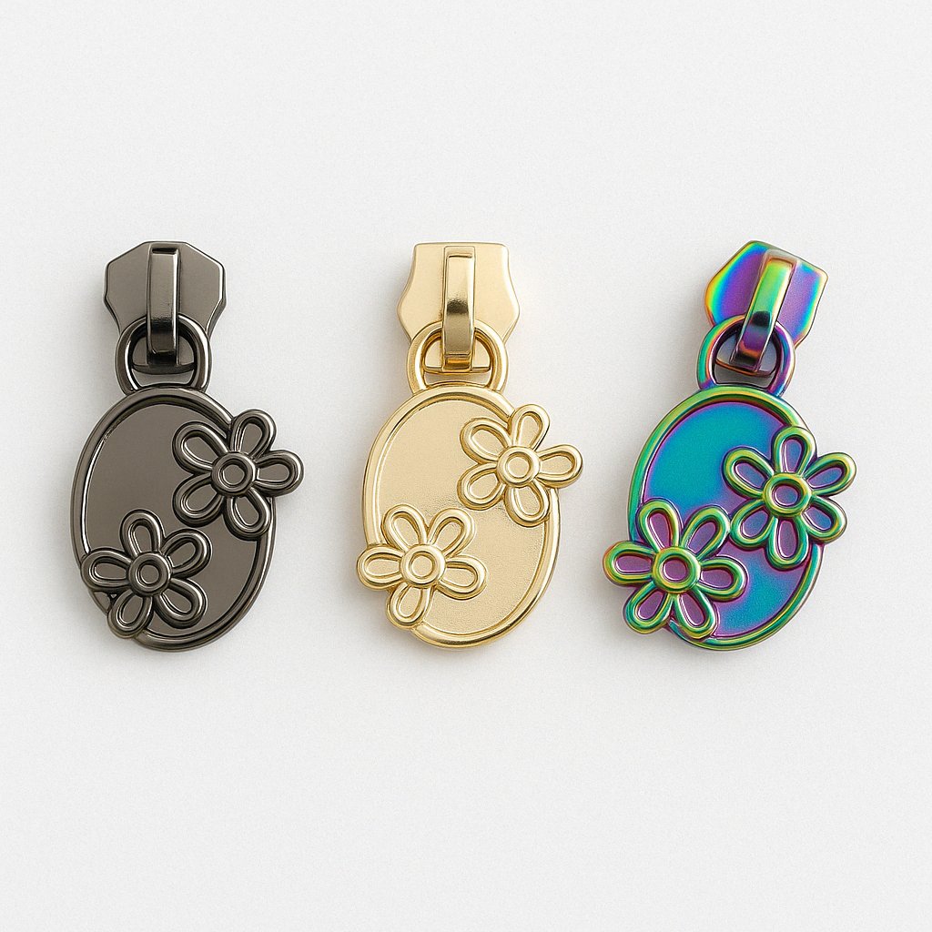 We stock #5 zipper pulls in a variety of finishes and designs....